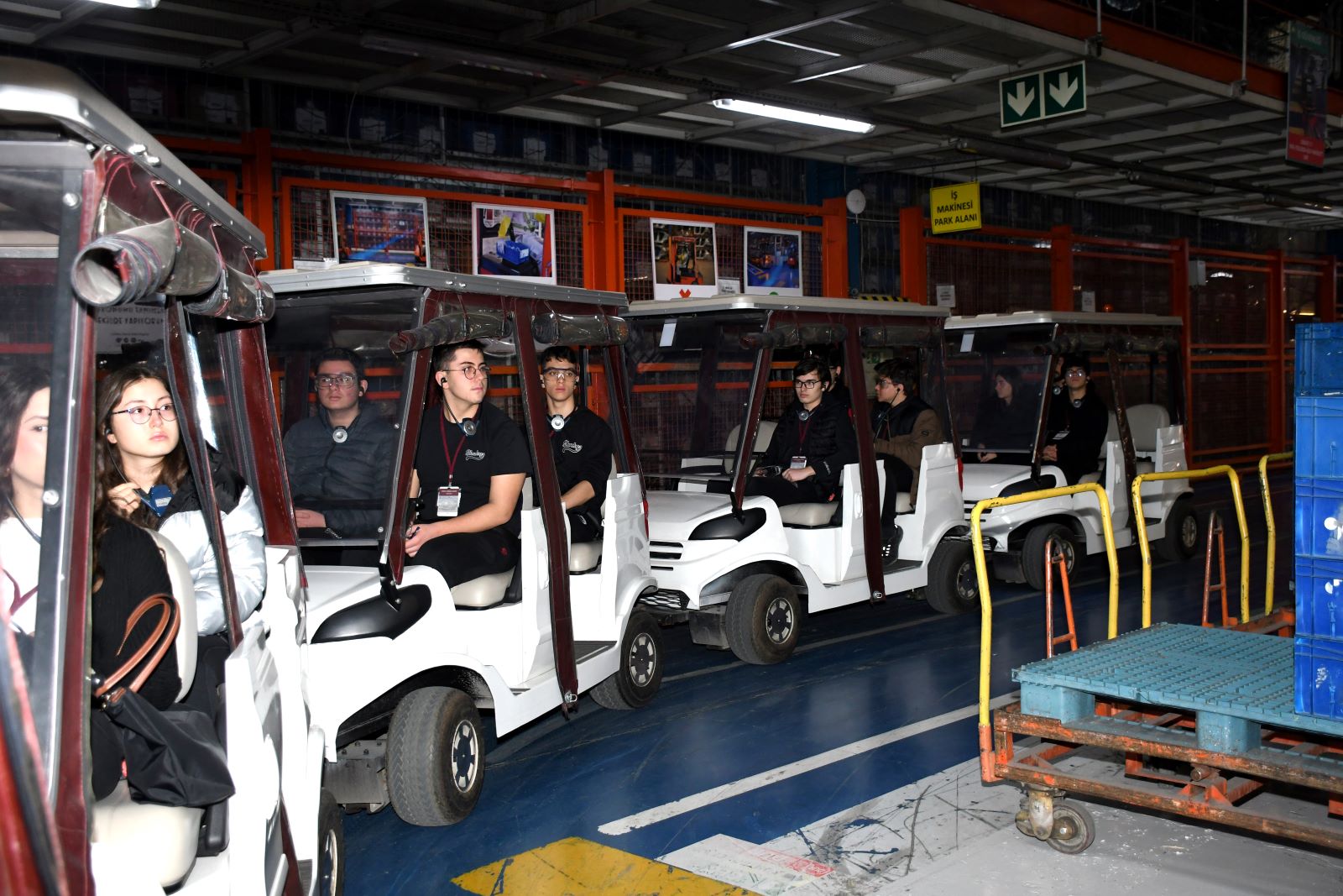 Öğrenciler, özel bir araçla fabrikayı baştan sona kadar gezerek bir aracın yapım sürecini dikkatlice takip ettiler. Tüm birimleri ziyaret ederek üretim aşamalarını gözlemleme şansı bulan öğrenciler, bu deneyimle endüstriyel süreçlere daha yakından tanıklık ettiler.
