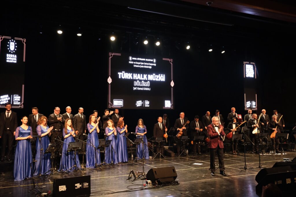 Merinos Atatürk Kongre ve Kültür Merkezi’nde düzenlenen konserde Koro Şefi Kemal Kamalı öncülüğünde yörelerden türküler seslendirildi. Türk Halk Müziğinin sevilen isimlerinden Ayfer Vardar, Bursalı türkü severlere eşsiz bir müzik yolculuğu yaşattı. Türk Halk Müziği bölümü sanatçılarının ve ses sanatçısı Ayfer Vardar’ın farklı yörelere ait seslendirdiği türküler salonu dolduran izleyicilerden büyük alkış aldı. Konser sonunda Şef Kemal Kamalı ve sanatçı Ayfer Vardar’a çiçek takdim edildi.