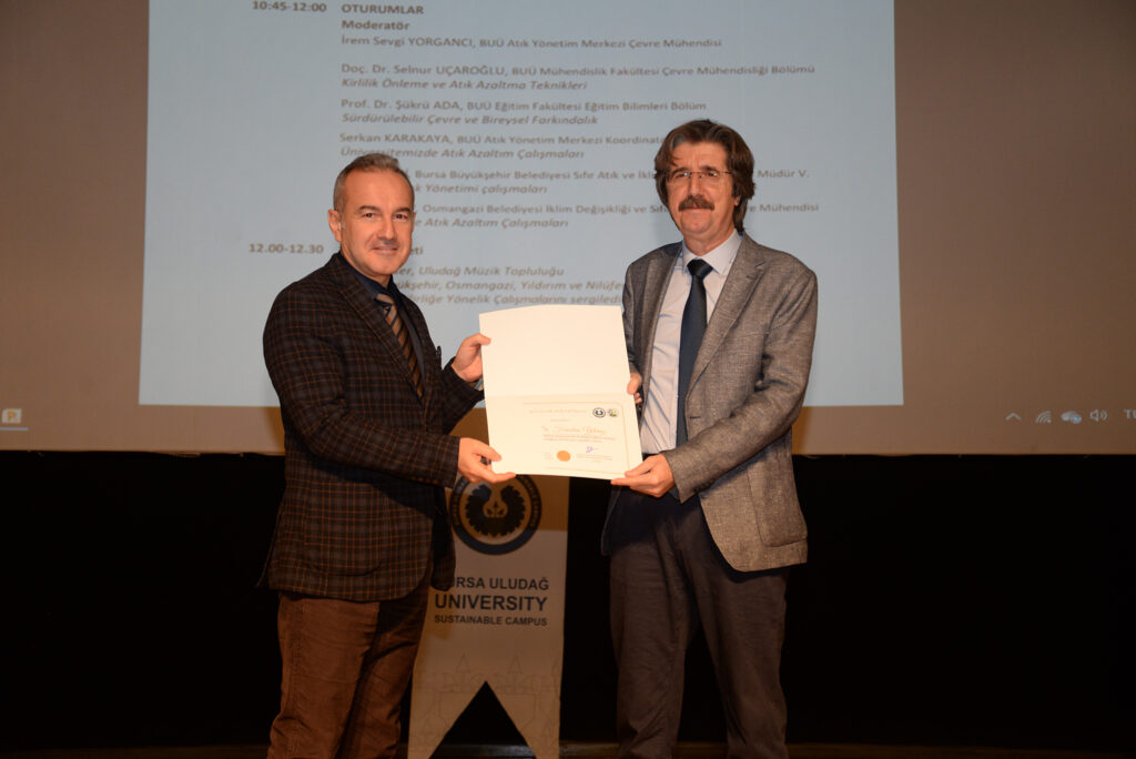 Açılış konuşmalarının ardından BUÜ Mühendislik Fakültesi Çevre Mühendisliği Bölümü Öğretim Üyesi Doç. Dr. Selnur Uçaroğlu, Eğitim Fakültesi Eğitim Bilimleri Bölümü Öğretim Üyesi Prof. Dr. Şükrü Ada, BUÜ Atık Yönetim Merkezi Koordinatörü Serkan Karakaya, Büyükşehir Belediyesi Sıfır Atık ve İklim Değişikliği Şube Müdürü Çağlar Eksi ile Osmangazi Belediyesi Sıfır Atık ve İklim Değişikliği Şube Müdürü Dilek Yosun, çevre ve atık yönetimine dair yürüttükleri çalışmaları sundu.