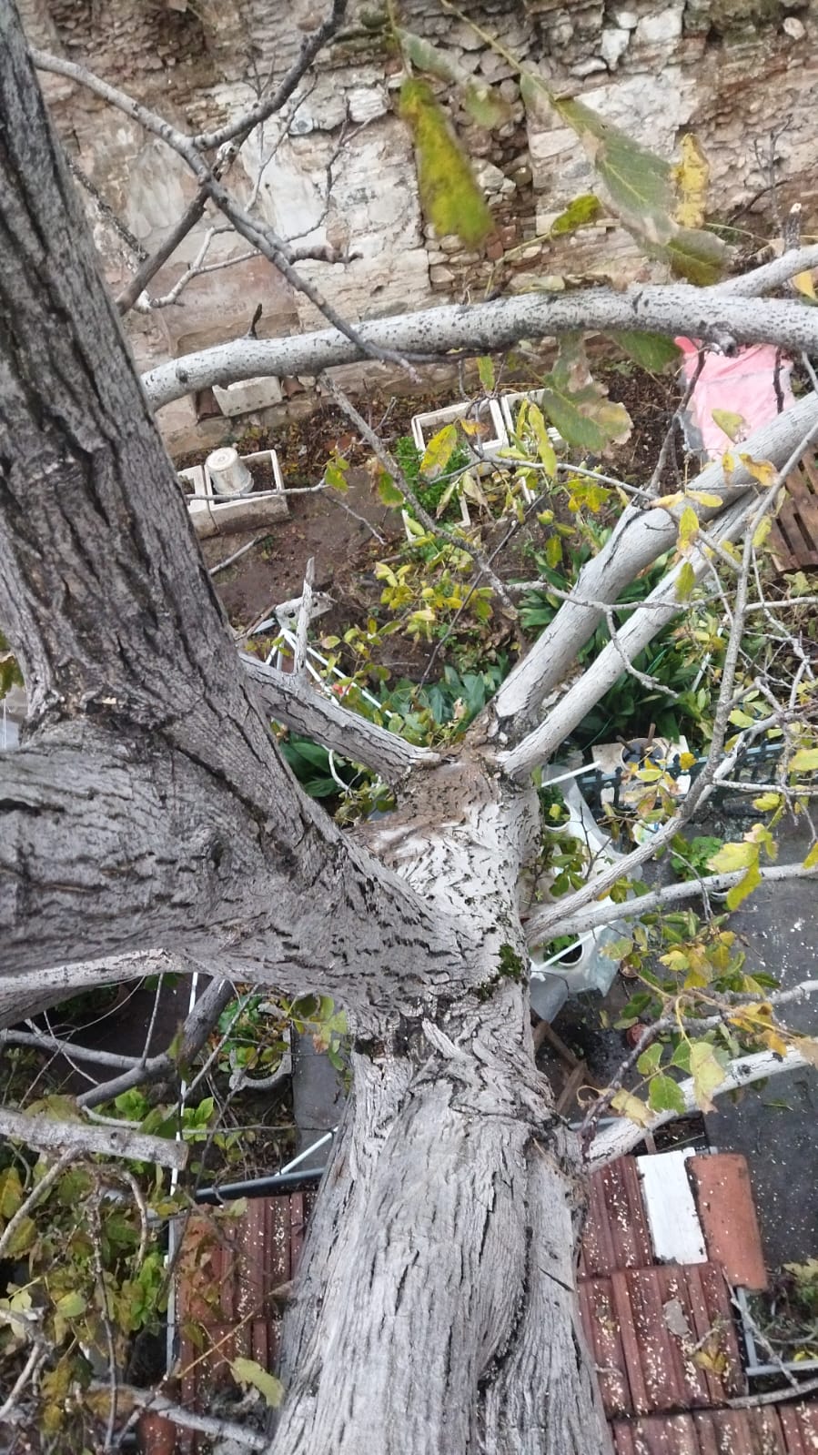 çatı ve tabelaları kaldırdı. Ekipler, ağaçlarda hasar gören ve tehlike saçan dalları da kesti.