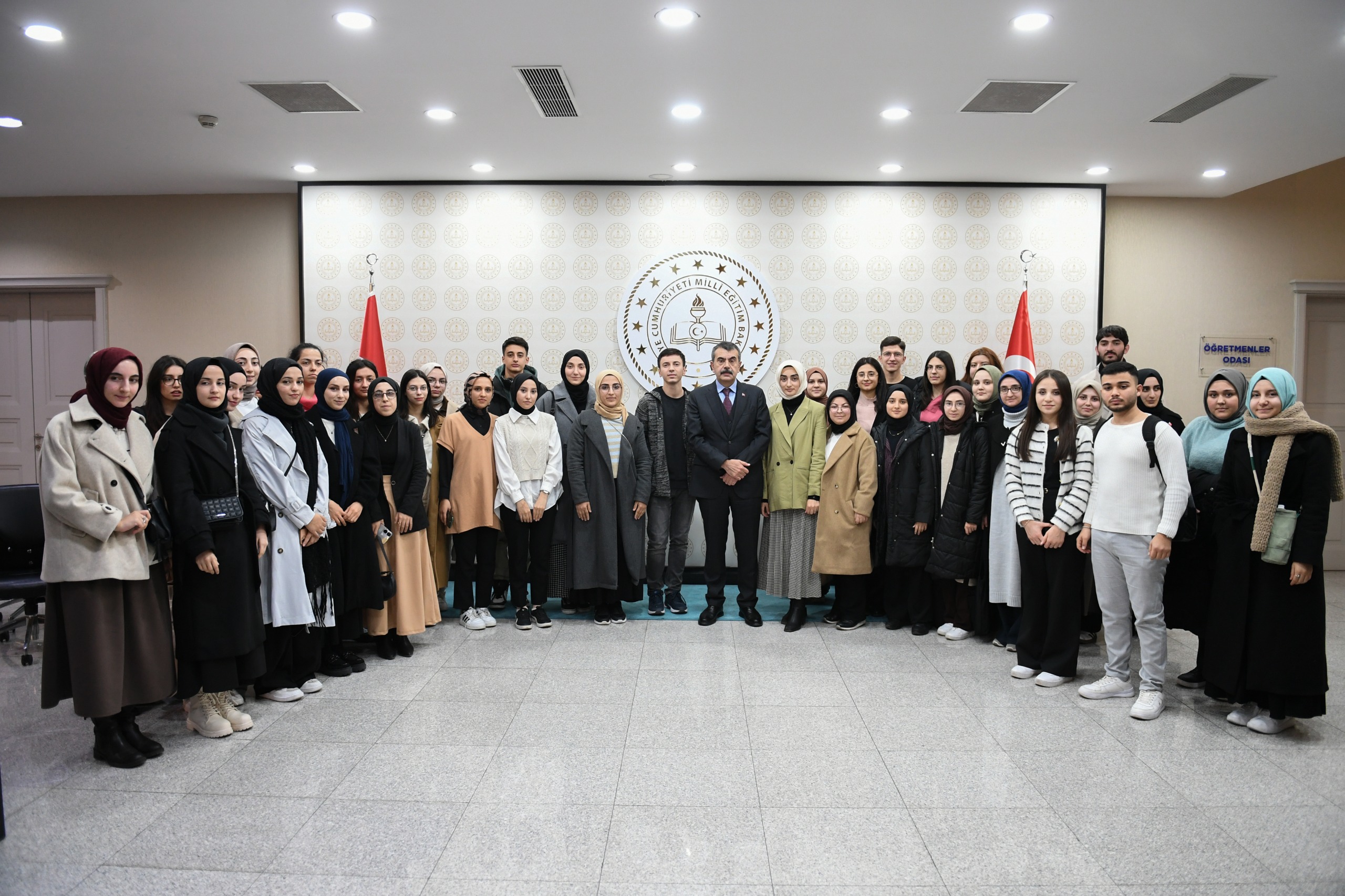 Öğrenciler, eğitim politikalarına dair görüş alışverişinin ardından Milli Eğitim Bakanı Yusuf Tekin’in konuğu oldu.