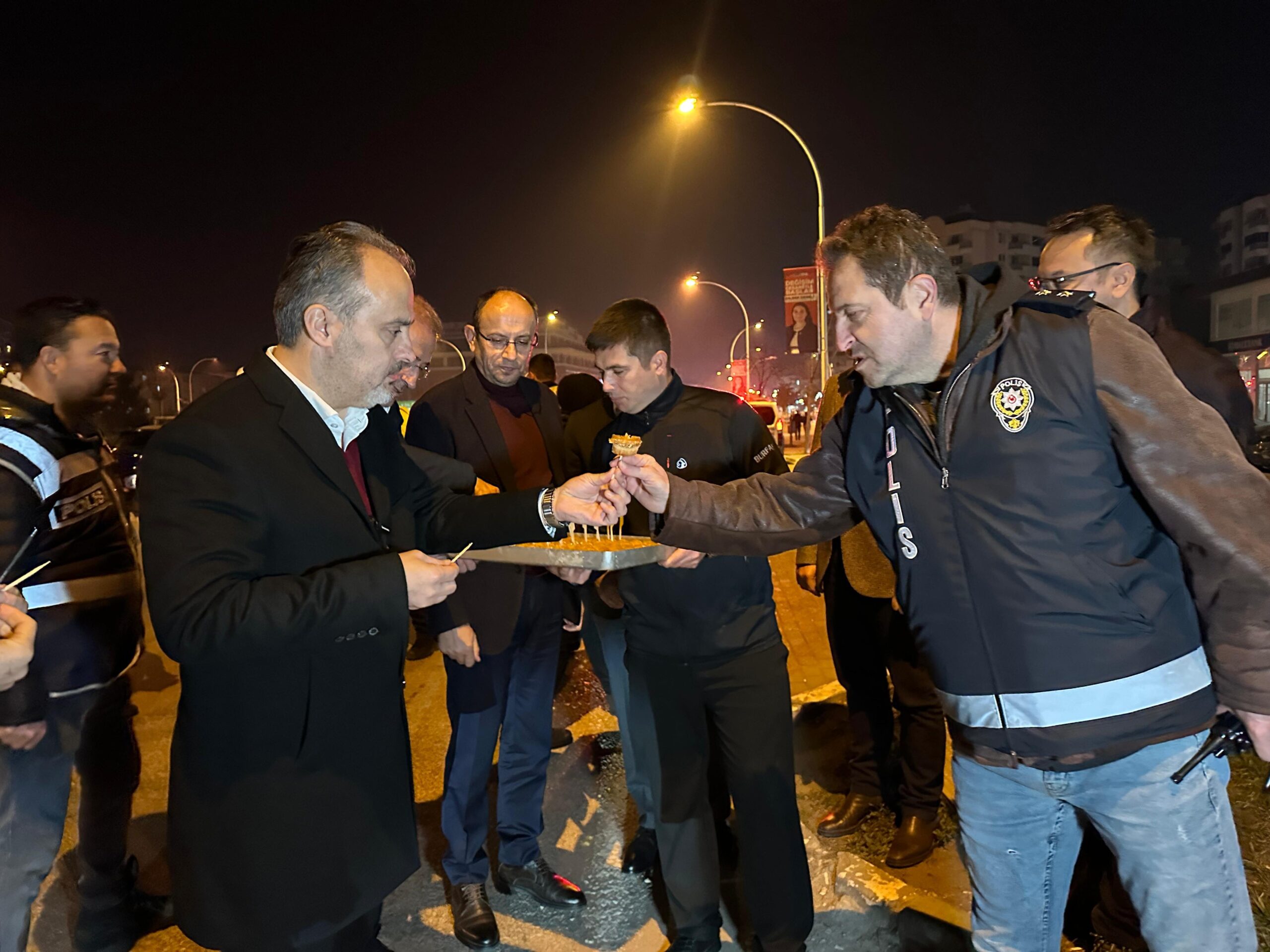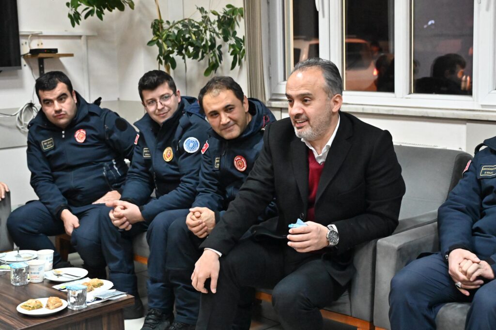 Büyükşehir Belediye Başkanı Alinur Aktaş, 2023’ün son saatlerinde görev başındaki itfaiye ve emniyet görevlilerini ziyaret etti. Beraberindeki Bursa Milletvekili Mustafa Yavuz ve Ahmet Kılıç, AK Parti İl Başkan Yardımcıları Kamil Bayramiç ve Ferhat Erol, AK Parti Nilüfer İlçe Başkanı Furkan Alpaslan ile birlikte ilk olarak Küçük Sanayi’deki İtfaiye Daire Başkanlığı binasını ziyaret eden Başkan Alinur Aktaş, görev başındaki itfaiyecilerle bir araya gelip sohbet ederek baklava ve boza ikramında bulundu. Başkan Aktaş, Bursalıların rahat ve huzur içinde bir gece geçirmesi için sabaha kadar görev başında olan emniyet güçlerini de unutmadı. Özlüce Mahallesi Ahmet Taner Kışlalı Bulvarı’ndaki emniyet kontrol noktasına uğrayarak burada görevli polisleri ziyaret eden Başkan Aktaş, görevi başındaki emniyet mensuplarına başarılar dileyerek tatlı ikram etti. Daha sonra Ertuğrul Taksi Durağı’nı ziyaret eden Başkan Aktaş, taksici esnafıyla sohbet ederek durak telsizinden yaptığı anonsla direksiyon başında olan taksicilerin yeni yılını kutladı. Durakta çalan telefonu da açan Başkan Aktaş, arayan vatandaşın da yeni yılını tebrik edip taksi için adresi aldı.