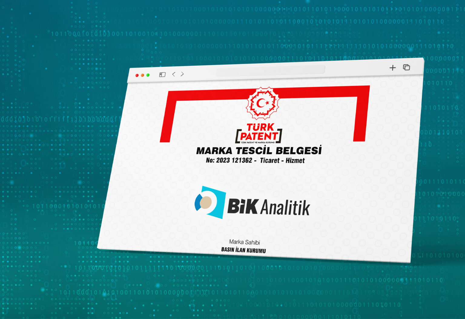6769 sayılı Sınai Mülkiyet Kanunu kapsamında 24 Ocak 2024 tarihinde 35, 38 ve 42 numaralı mal ve hizmet sınıflarında onay alan BİK Analitik markası, başvurunun yapıldığı 15 Eylül 2023 tarihinden itibaren 10 yıl süreyle koruma altına alındı.
