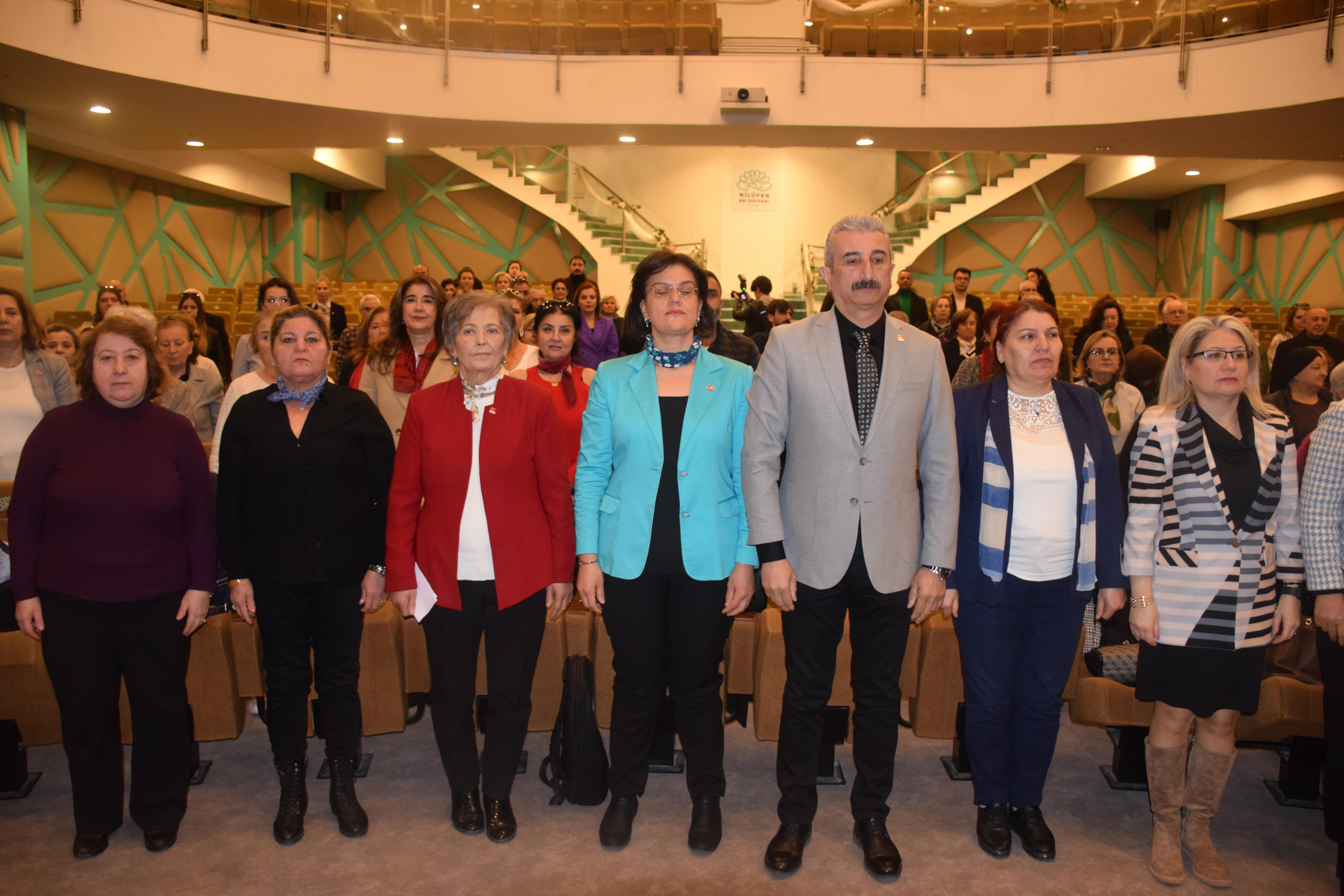 Saygı duruşu ve İstiklal Marşı’nın okunmasının ardından başlayan etkinlikte sözü ilk olarak CHP Bursa İl Kadın Kolları Başkanı Aysel Okumuş aldı.